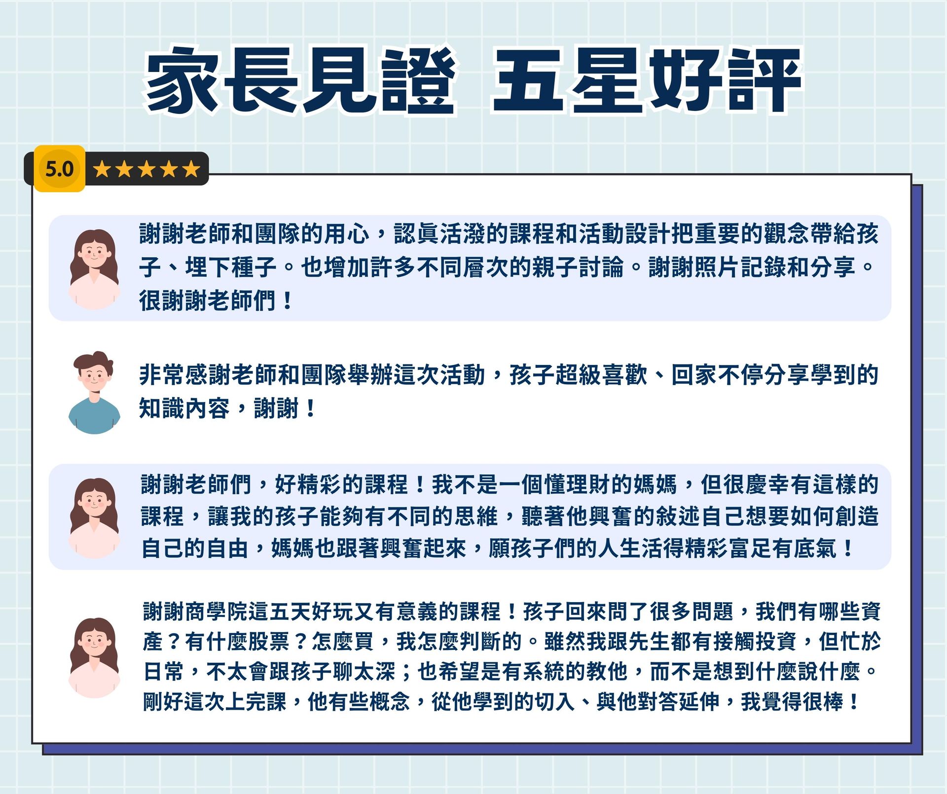 課程設計融合「任務冒險 x 財商教育」,讓孩子在趣味挑戰中學會理性思考、聰明選擇,並養成正確的金錢觀,成為能掌握未來的理財高手!