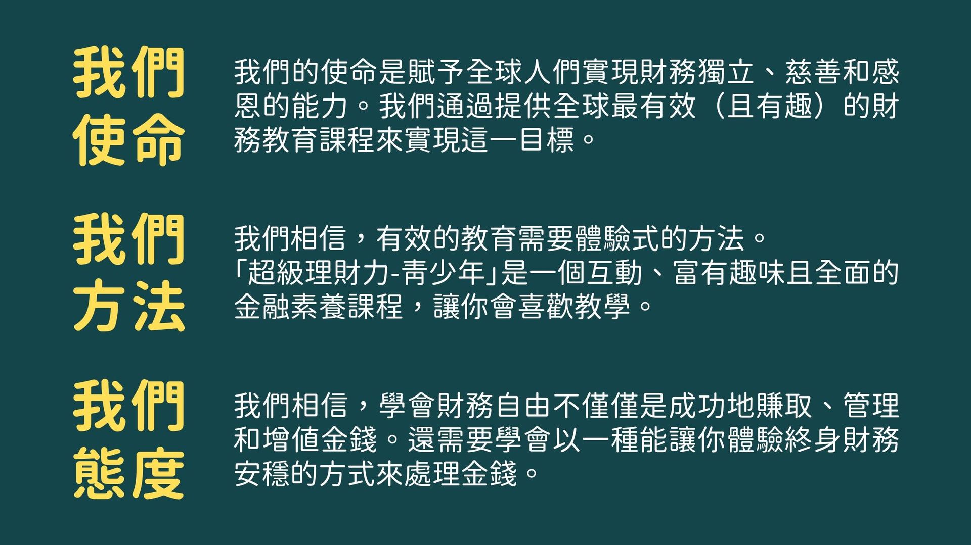 成立於2014年,全台唯一不間斷,持續開兒童財商課程的教育機構,至今累計超過10萬人次的教學且持續增加中。