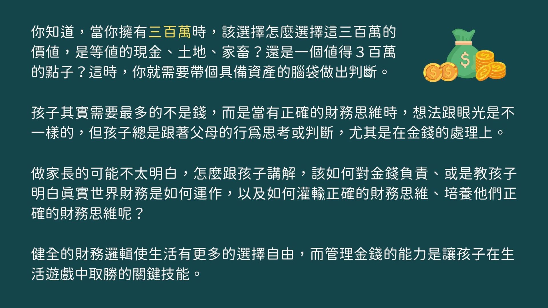企業使命「有效提升兒童財商,讓幸福從小扎根」,用體驗式教學帶孩子玩出FQ力!
