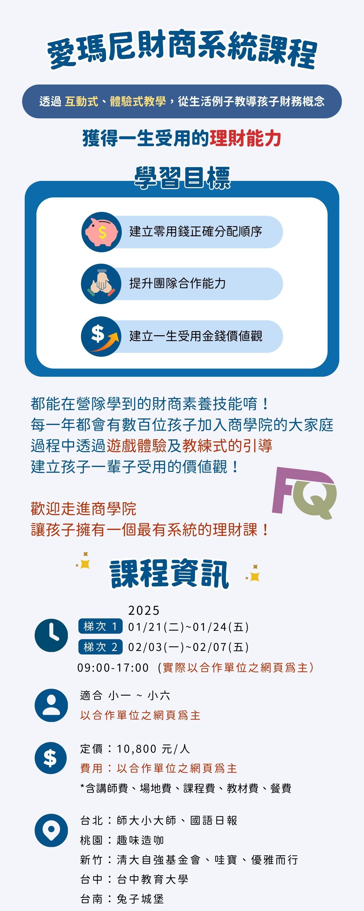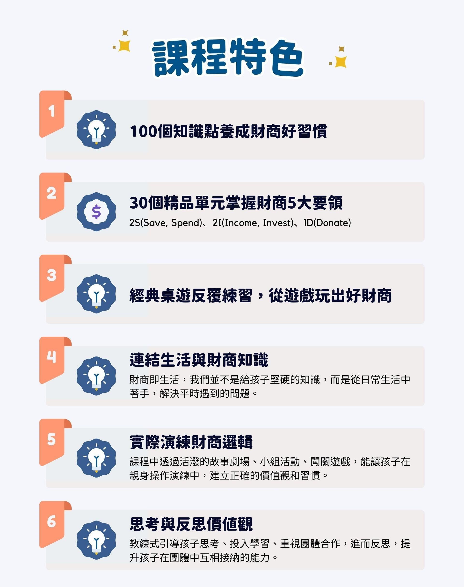 最完整的財商教學系統,擁有4~18 歲、家長課程、師資培訓的全方位財商教學系統