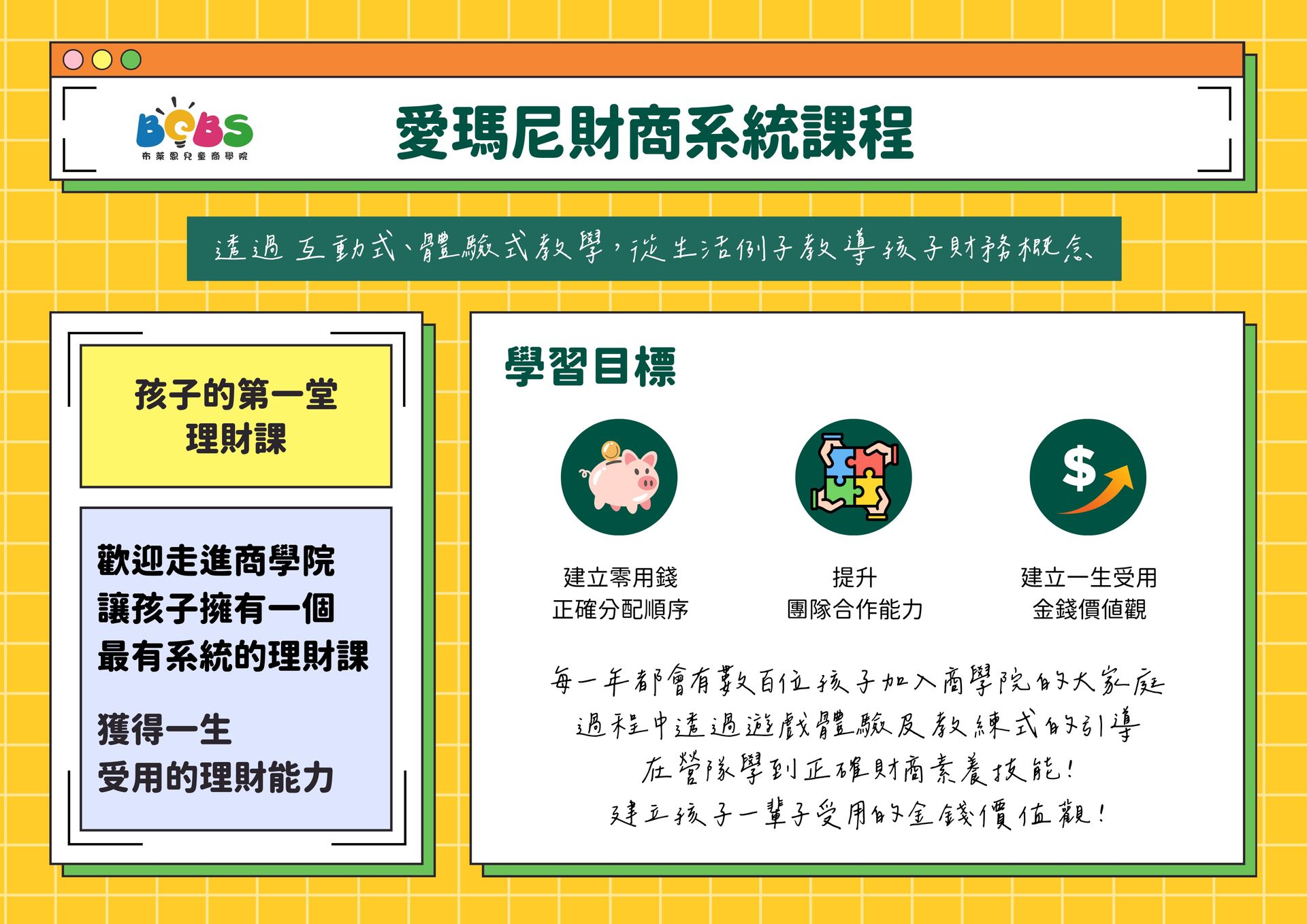想了解「孩子的第一堂理財課」,請洽 FB 優先獲得課程通知
