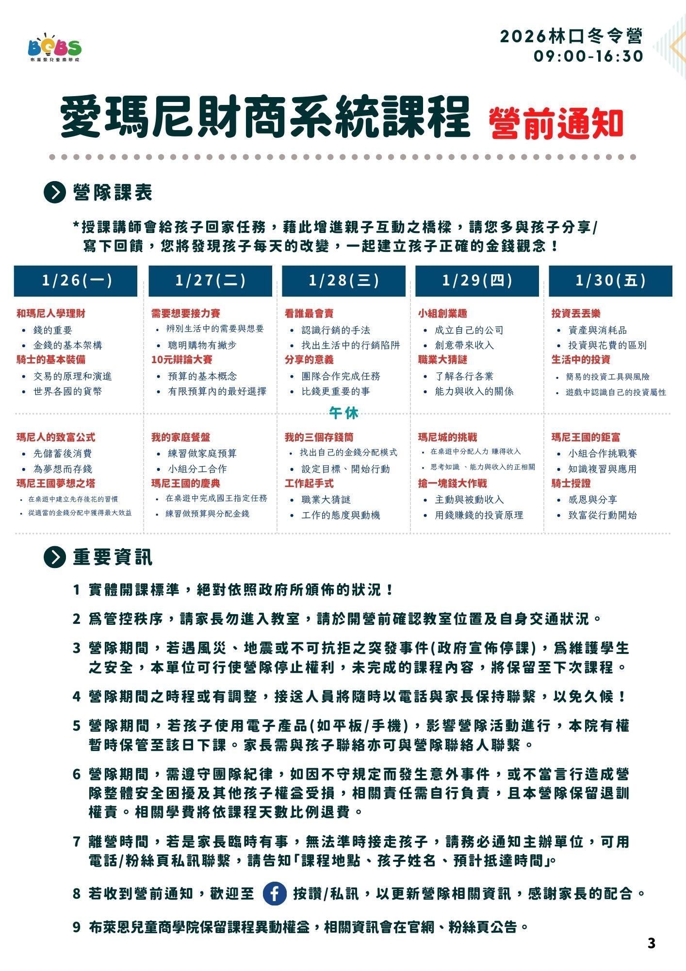 【課前通知】2026 林口冬令營|愛瑪尼財商系統課 (1/26-1/30)